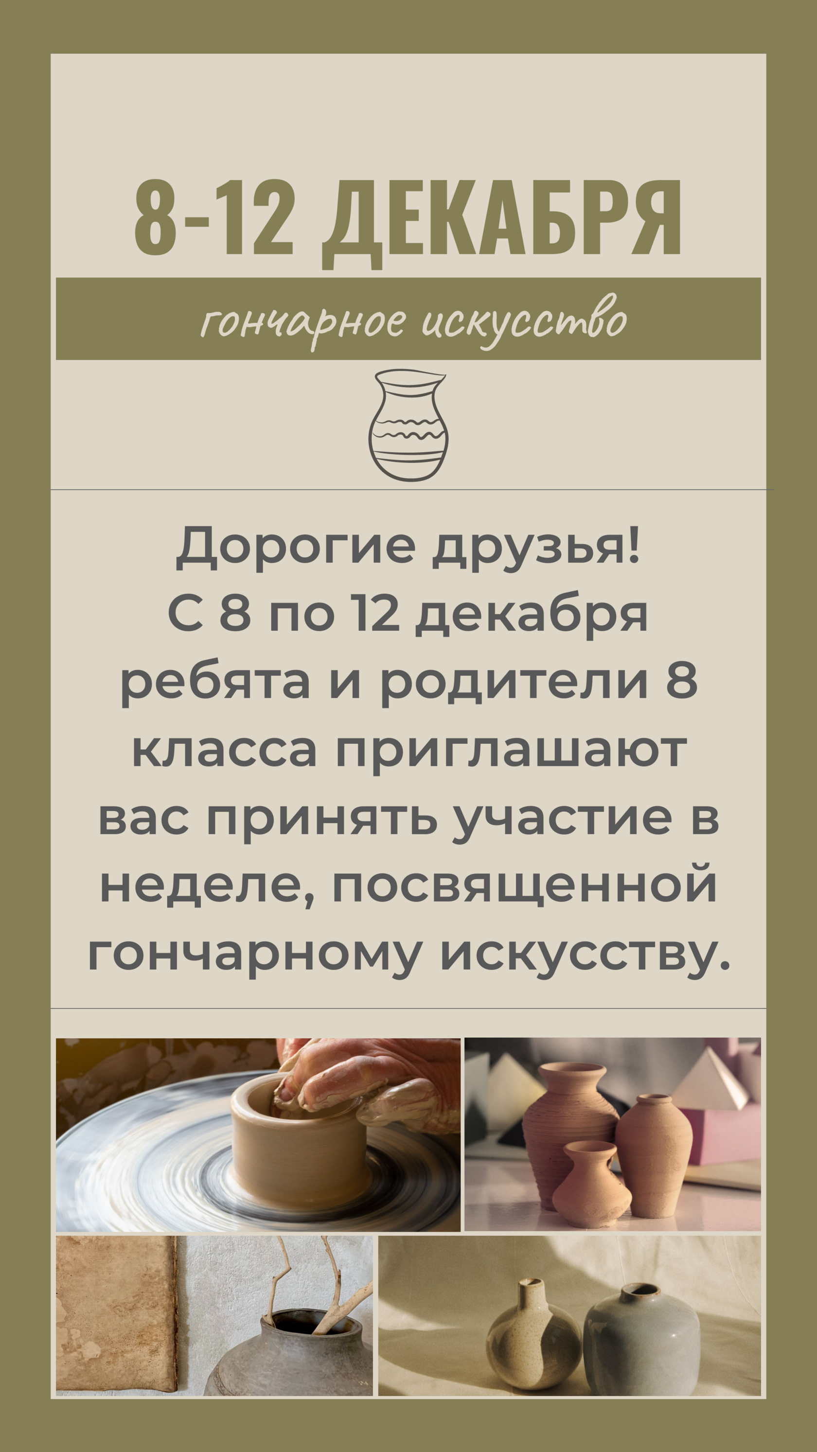 С 8 по 12 декабря в нашей школе пройдет тематическая неделя, посвященная гончарному искусству.