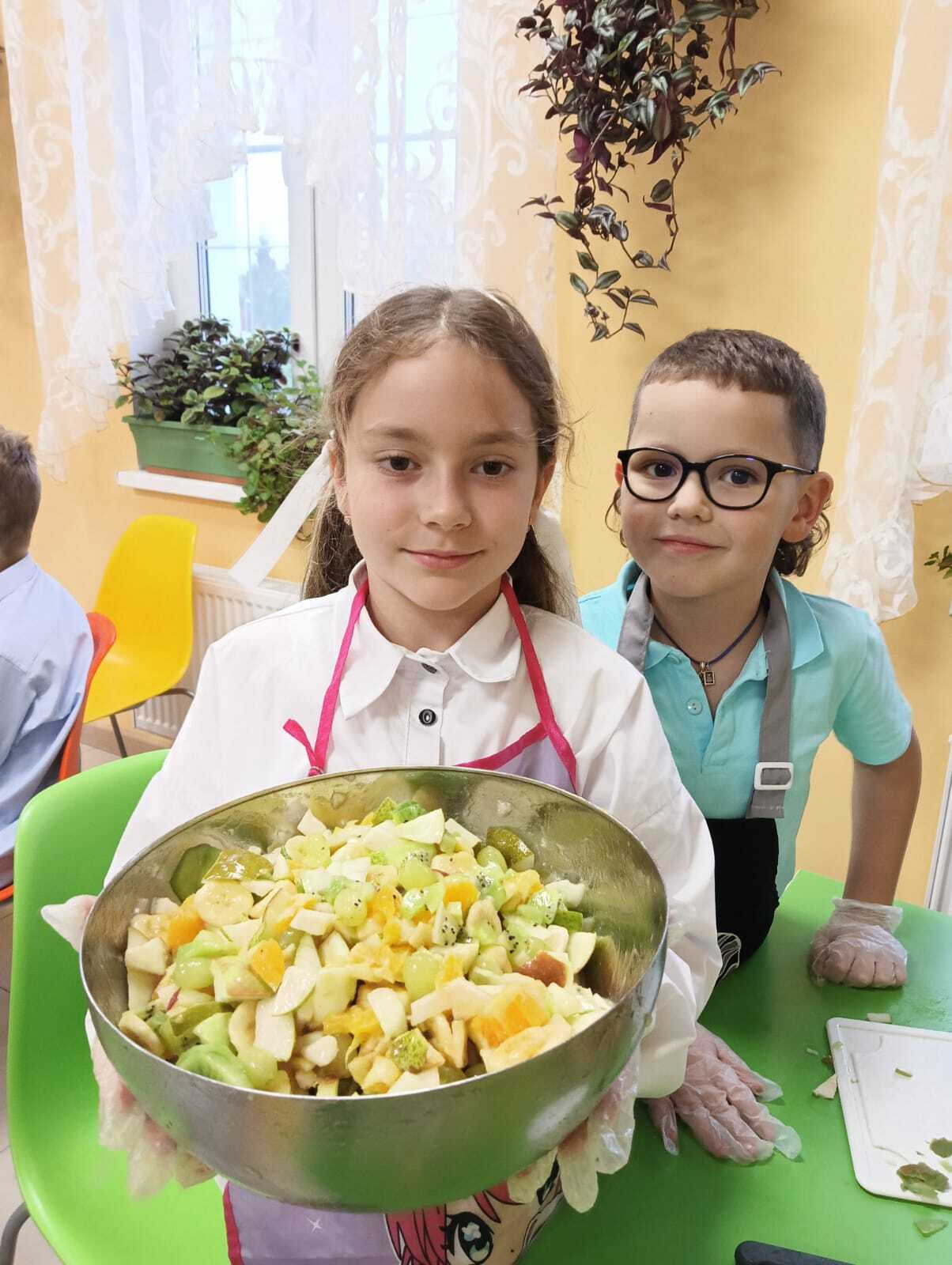 Старшие шестиклассники с радостью выступили в роли наставников: они помогали младшим товарищам освоить азы кулинарного мастерства, учили их безопасно обращаться с ножом и другим инвентарем. Вместе ребята не только весело провели время, но и узнали много нового о пользе витаминов и здоровом питании.